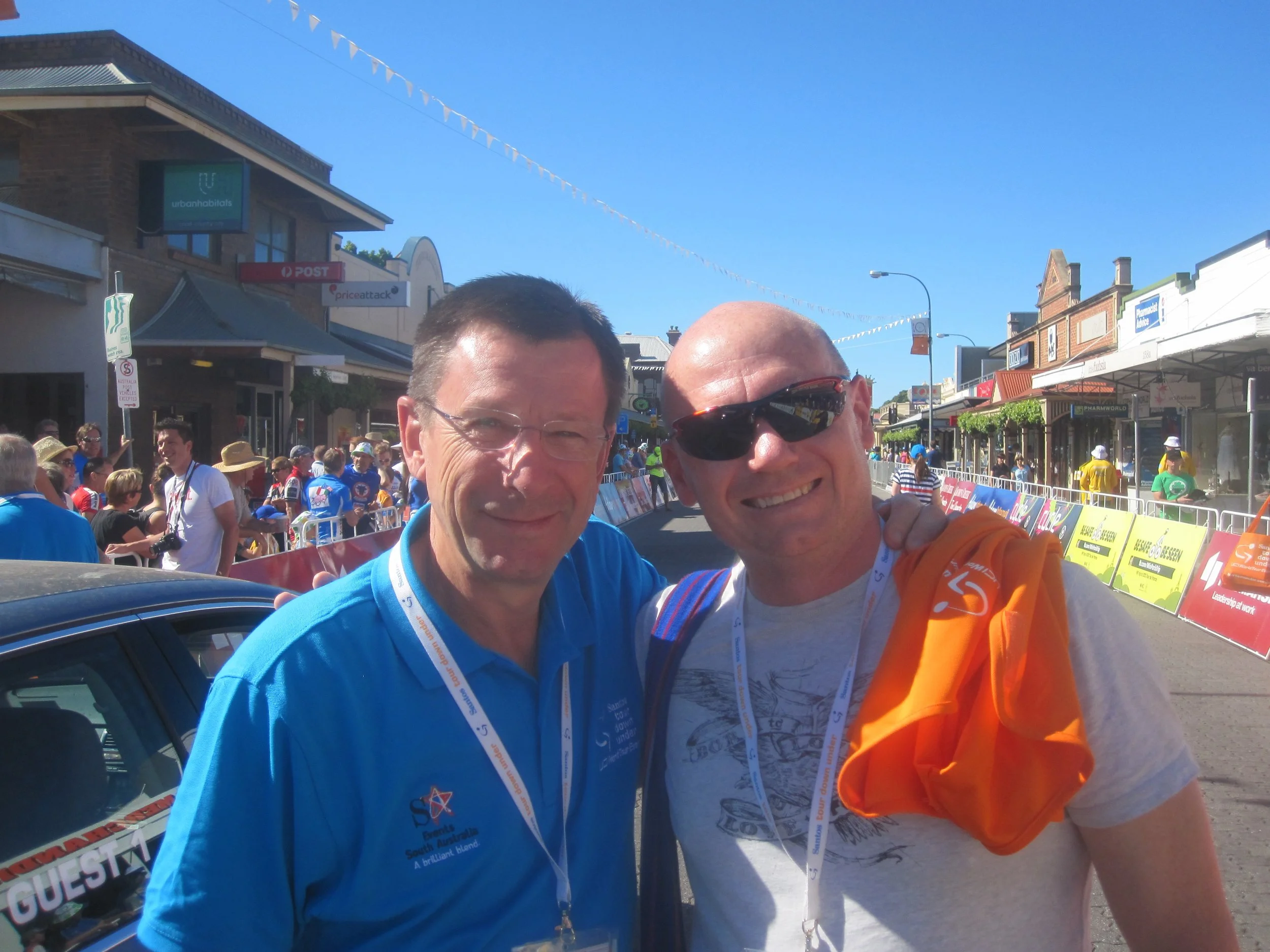 The late Paul Sherwyn and Simon spend a moment together enjoying pre-race time. Paul passed away from cancer in 2018.
